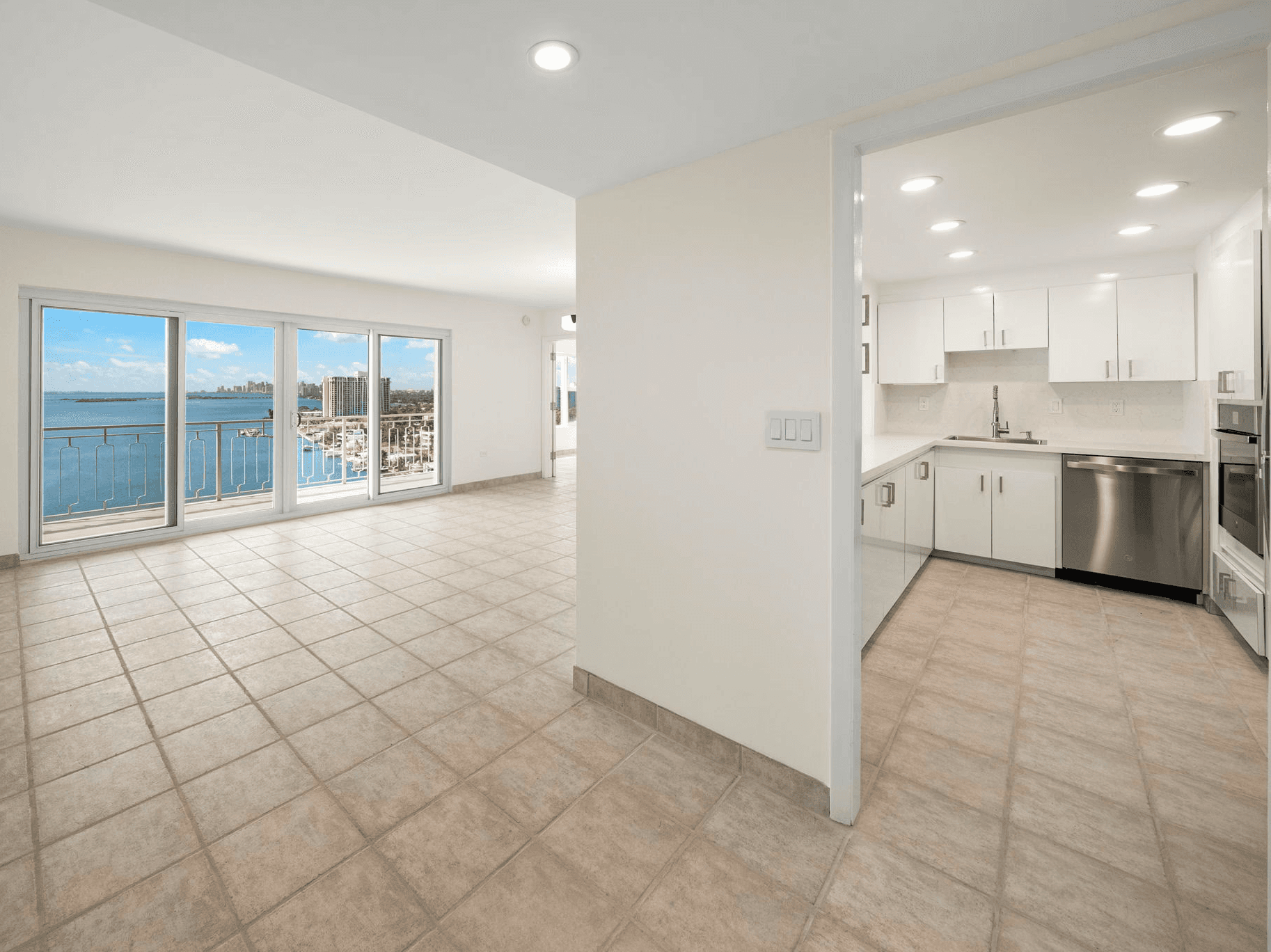 The home features hurricane-impact windows that maximize the water views, a new GE kitchen with quartz countertops, and a beautifully finished marble primary bath.